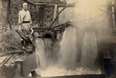 しかし、明治期になると中央資本が常磐で大規模な石炭採掘を始め、 坑内に湧出する温泉を汲み上げ、温泉面の低下を来し、大正8年には湯脈が断たれ温泉町として機能を失いました。反面、出炭量は増大し、石炭景気で湯本町商店街は繁栄し、 それは昭和40年代まで続きました。しかし先人達の活躍により、温泉揚湯会社を設立し、毎分5トンの揚湯を確保しました。(揚湯にもかからわず、年々温泉面は上昇しております。)