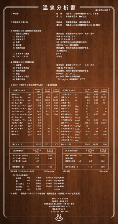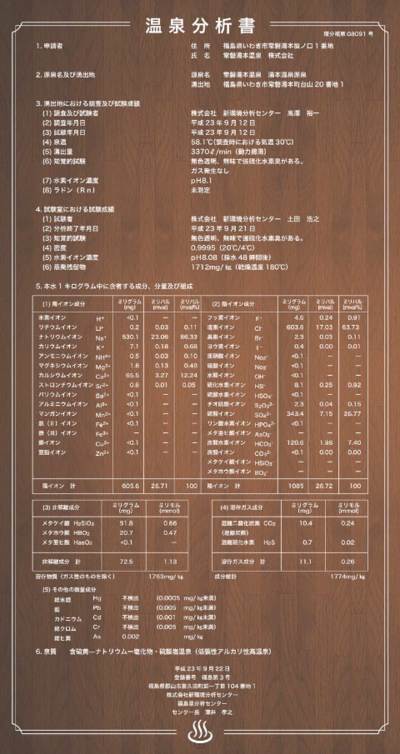 (略記泉質名 含S-Na-Cl ・ SO4 温泉)